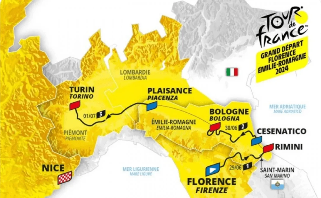 Grand Départ Florence Émilie-Romagne 2024. È ufficiale: per la prima volta in oltre un secolo di storia il Tour de France nel 2024 prenderà il via dall’Italia.