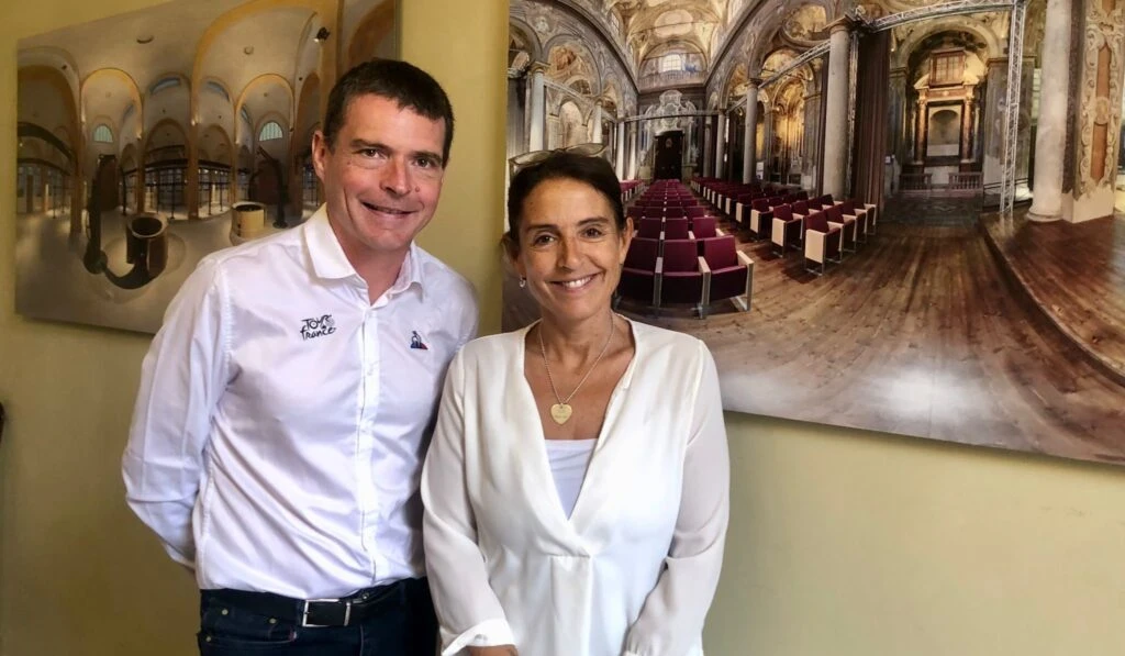 Questa mattina in Municipio si è tenuta una prima riunione tecnica che ha visto la partecipazione, tra gli altri, della sindaca Katia Tarasconi e del responsabile organizzativo del Tour Yannick Goasduff (in foto con la sindaca).