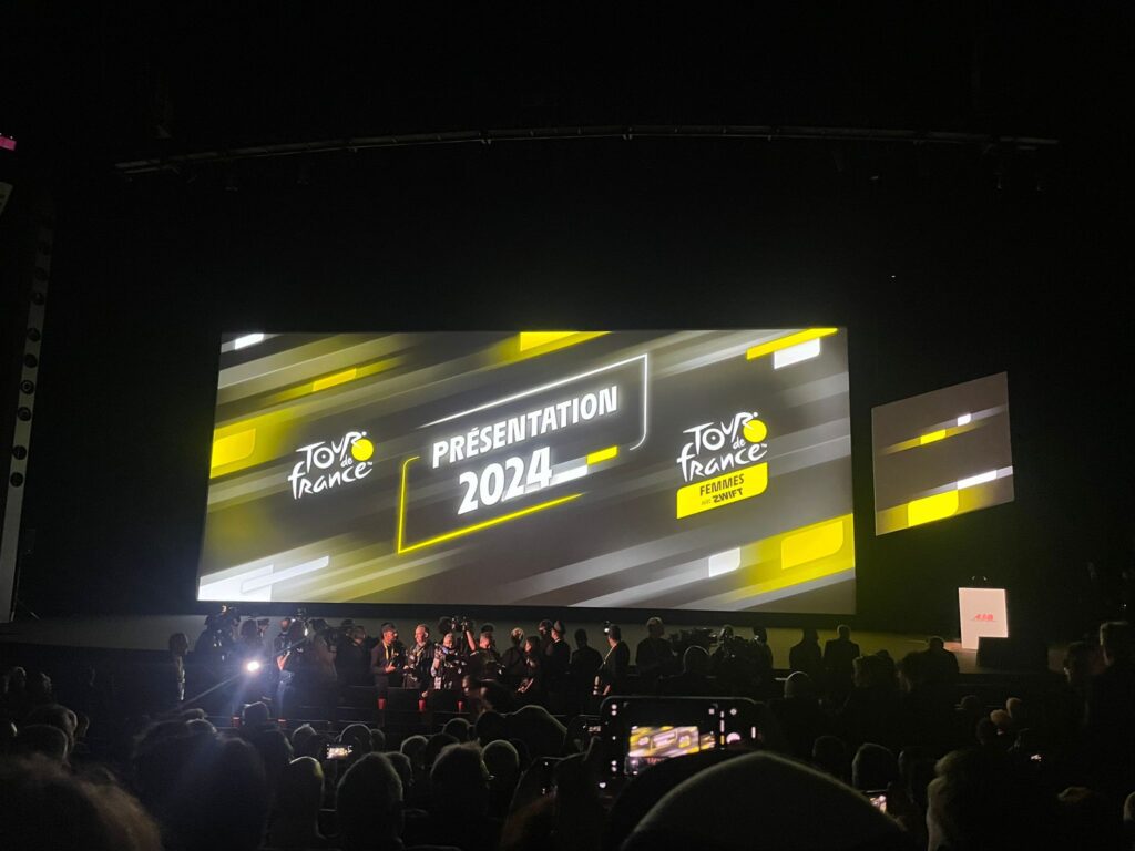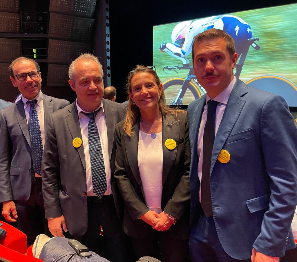 Una cerimonia in grande stile con quasi 4mila persone presenti, tra giornalisti, organizzatori, autorità e ospiti. C’erano anche le delegazioni delle città italiane coinvolte ne Grand Départ, la grande partenza del Tour che per la prima volta nella storia dell’evento sportivo (il più seguito al mondo dopo i mondiali di calcio) si svolgerà proprio in Italia, da Firenze a Rimini, da Cesenatico a Bologna, da Piacenza a Torino.