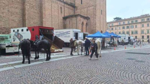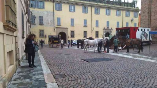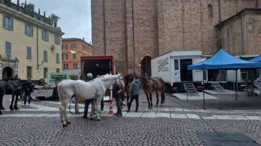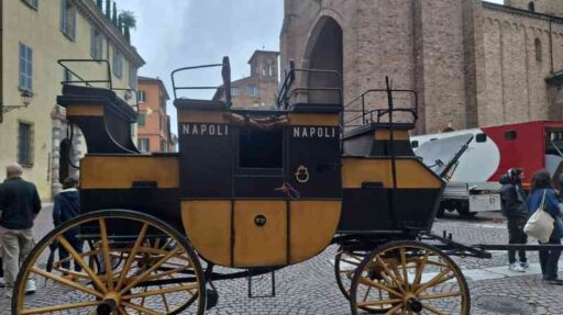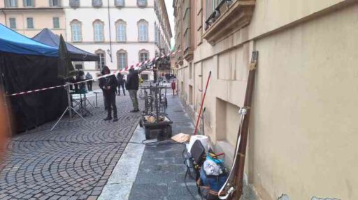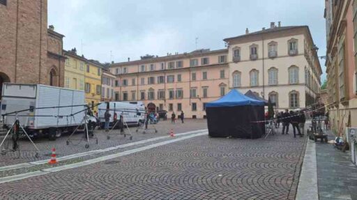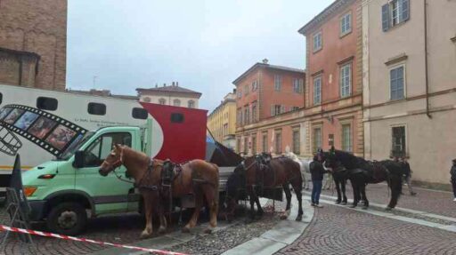 E proprio nell’Ottocento sembra di sprofondare passeggiando all’ombra della basilica intitolata al nostro patrono. Cavalli, carrozze, allestimenti di un tempo che fu. A riportarci nel 2024 sono ovviamente i tanti tecnici e macchinisti che affollano il set.