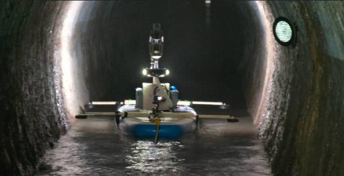 A inizio febbraio, la seconda fase, quella più pionieristica, finalizzata all’ottenimento del rilievo tridimensionale della galleria e alla sperimentazione di tecnologie di rilievo innovative. Continua Luca Perfetti: “All’interno della galleria, abbiamo posizionato due strumenti di misura sopra a un galleggiante che abbiamo fatto scorrere a pelo di corrente per ottenere una serie di immagini e misurazioni laser scanner. In questo modo abbiamo ottenuto le nuvole di punti dalle quali ricaveremo il modello tridimensionale”. A rendere innovativo il rilievo, gli strumenti utilizzati, tra i quali un prototipo brevettato e non ancora a mercato. Nella pratica, uno strumento fotogrammetrico chiamato Ant3D, composto da un insieme di fotocamere, utile all’acquisizione digitale della condotta e che gli atenei stanno valutando come strumento di misura e ispezione autonoma di ambienti scarsamente accessibili.