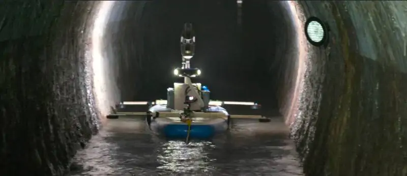 A inizio febbraio, la seconda fase, quella più pionieristica, finalizzata all’ottenimento del rilievo tridimensionale della galleria e alla sperimentazione di tecnologie di rilievo innovative. Continua Luca Perfetti: “All’interno della galleria, abbiamo posizionato due strumenti di misura sopra a un galleggiante che abbiamo fatto scorrere a pelo di corrente per ottenere una serie di immagini e misurazioni laser scanner. In questo modo abbiamo ottenuto le nuvole di punti dalle quali ricaveremo il modello tridimensionale”. A rendere innovativo il rilievo, gli strumenti utilizzati, tra i quali un prototipo brevettato e non ancora a mercato. Nella pratica, uno strumento fotogrammetrico chiamato Ant3D, composto da un insieme di fotocamere, utile all’acquisizione digitale della condotta e che gli atenei stanno valutando come strumento di misura e ispezione autonoma di ambienti scarsamente accessibili.