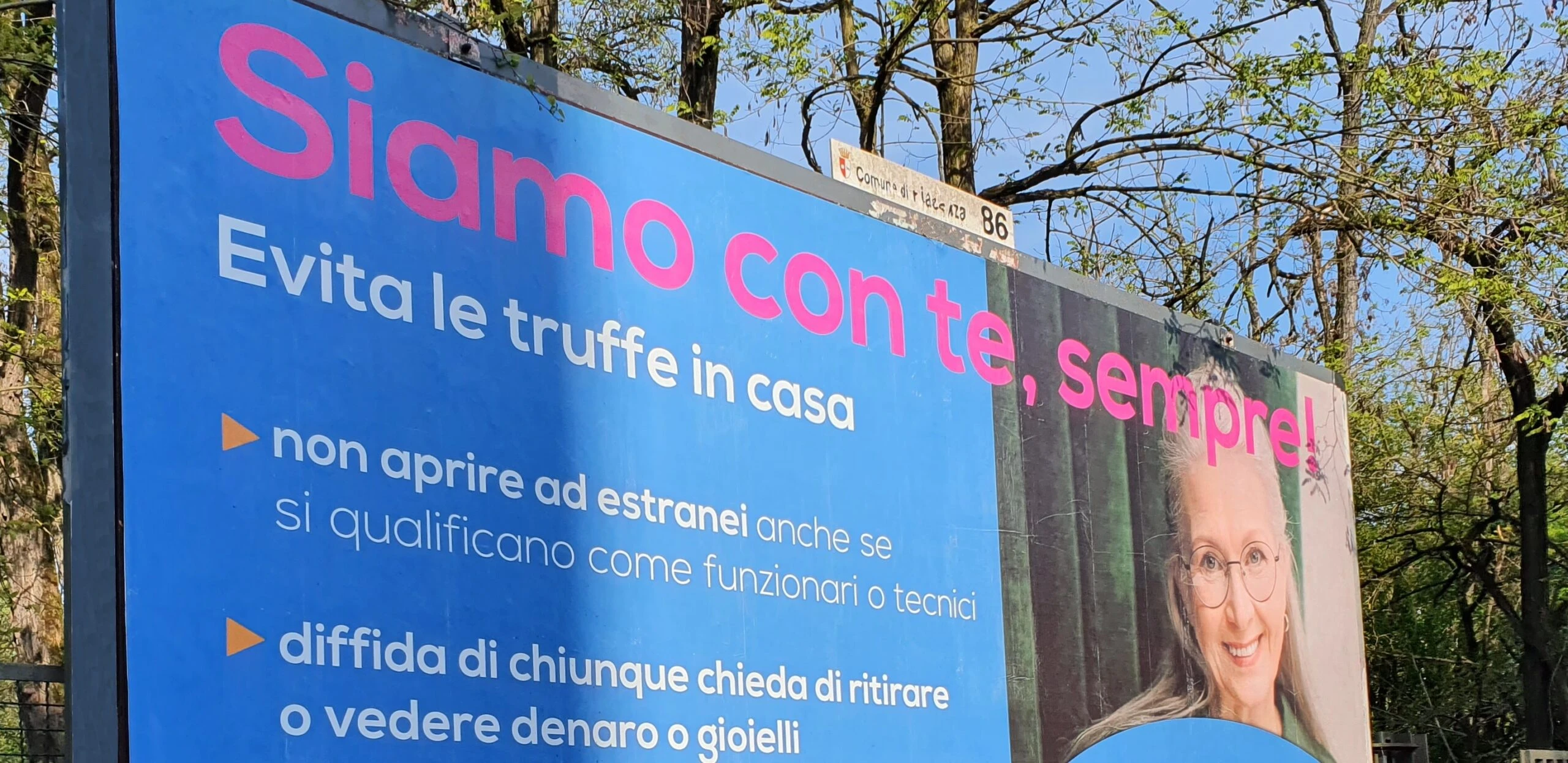 Ha preso il via, nei giorni scorsi, la campagna informativa e di sensibilizzazione alla prevenzione e al contrasto delle truffe ai danni dei cittadini, in particolare delle persone anziane. E’ stato infatti esposto, nei pressi del parco della Galleana, il primo di una serie di manifesti e supporti visivi che, grazie a immagini efficaci e immediate, potranno richiamare l’attenzione e consigliare come comportarsi per evitare di cadere nella rete dei potenziali truffatori. La campagna di sensibilizzazione si concentrerà soprattutto nei luoghi che possono garantire grande visibilità ai cartelloni e che sono maggiormente frequentati dalle persone anziane, a cominciare proprio dalle aree verdi cittadine.
