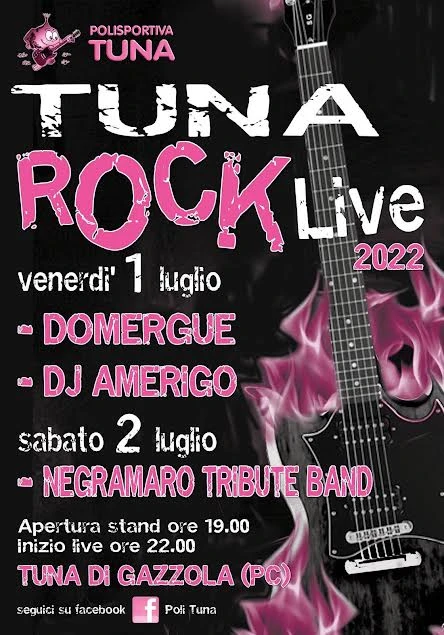 Tuna Rock Live 2022 nel Centro Sportivo della frazione di Gazzola l’1 e 2 luglio. Un appuntamento per vivere l’estate a tempo di rock.