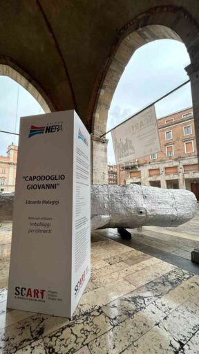 Un Capodoglio in piazza Cavalli, lungo 12 metri segnala ai piacentini la mostra SCART, il lato bello e utile del rifiuto, aperta a Palazzo Gotico fino al prossimo 16 gennaio, organizzata da Gruppo Hera e TRS Ecology (recentemente entrata nel Gruppo stesso, attraverso Herambiente), in collaborazione con Comune di Piacenza e Confindustria Piacenza. La mostra, a ingresso libero, espone opere interamente realizzate con scarti industriali, nell’ambito del progetto SCART, piattaforma artistico del Gruppo Hera.