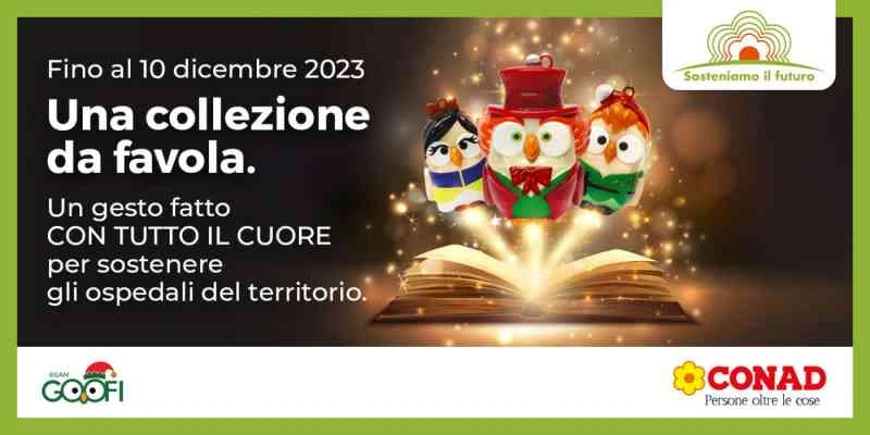 Fino al 10 dicembre 2023, i clienti Conad possessori di Carta Insieme e Carta Insieme Più Conad Card potranno collezionare una linea di 12 soggetti natalizi GOOFI, ispirati ai personaggi delle fiabe più classiche, tutti realizzati in plastica (ABS) 100% riciclata e confezionati in buste singole realizzate con carta FSC, a dimostrazione dell’impegno di Conad ed Egan nell’adottare pratiche responsabili per l’ambiente.