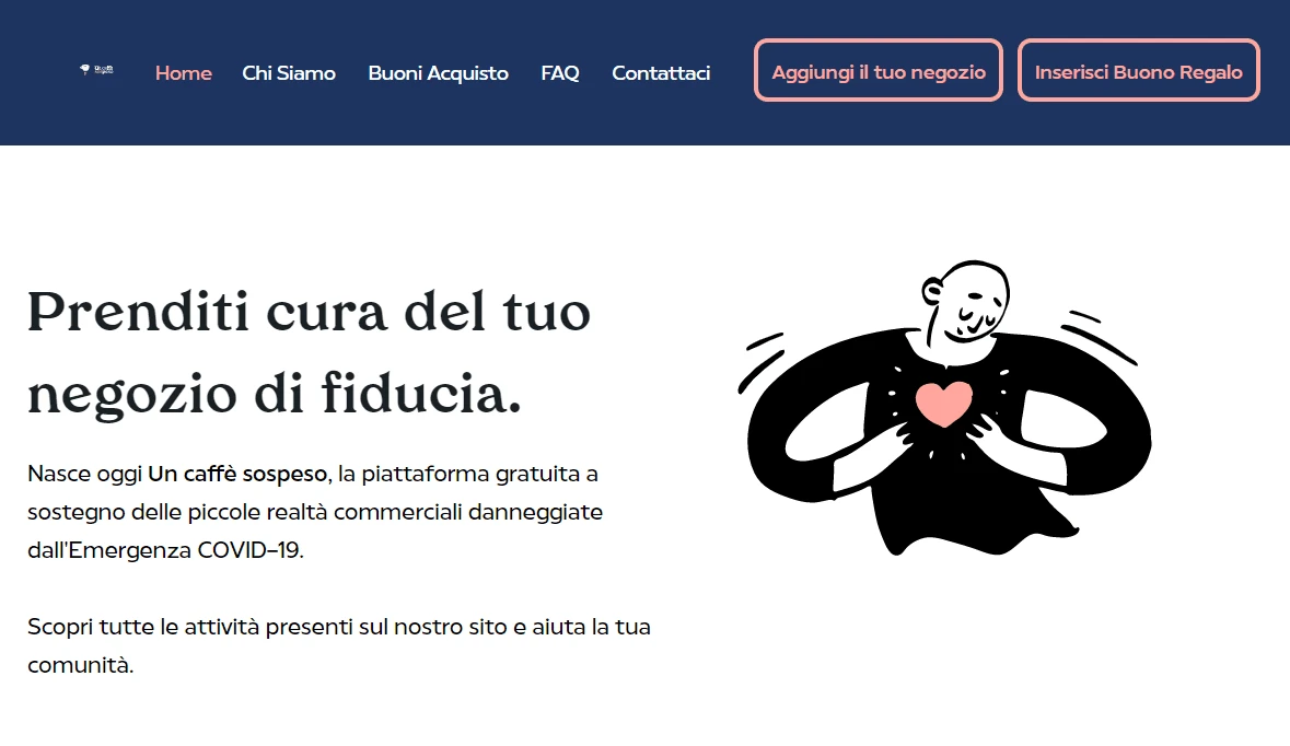 Dall’esigenza di venire incontro a queste realtà locali nasce la piattaforma uncaffesospeso.it che si propone di diventare un database nazionale attraverso il quale i proprietari delle piccole attività possano mettersi in contatto con i potenziali clienti.