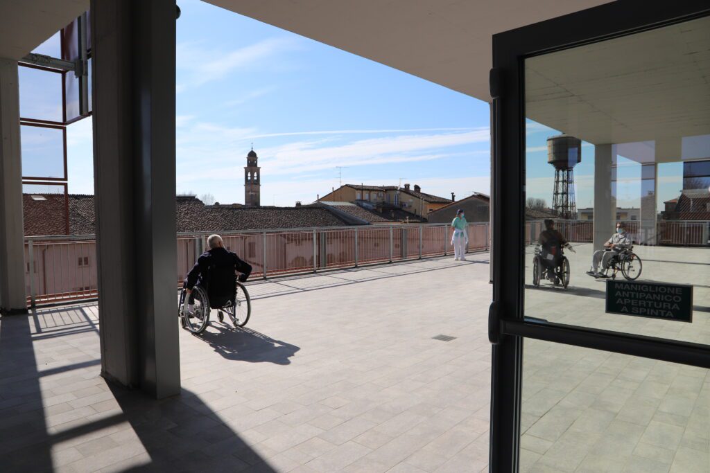 Il quarto piano è invece destinato ad attività di riabilitazione e valutazione clinica, con 3 palestre, 5 ambulatori e locali di lavoro per fisioterapisti e coordinatore. Anche al terzo piano sono presenti terrazzi che possono essere usati per attività ricreative e terapeutiche.