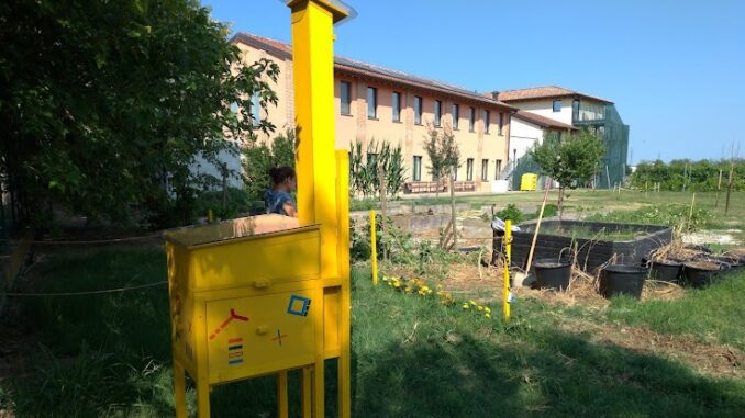 Grazie alla collaborazione con EDUCatt, l’arnia è entrata a far parte del giardino orticolo della Residenza Gasparini, un laboratorio all’aperto promosso dal DI.PRO.VE.S con viti, ulivi, piante da frutto, orti. L’area è stata precedentemente allestita con paletti, lavanda e fiori con un potenziale nettarifero per le api, in modo che queste ultime si trovino in un ambiente già adatto a loro. «Quest’arnia – spiega Ilaria Negri – si basa su una semplice prerogativa: avendo l’entrata dell’alveare posta alla sommità, in fondo a un piccolo camino, le api entrando e uscendo non hanno contatti con le persone che si muovono attorno. È dunque pensata per una zona urbana».
