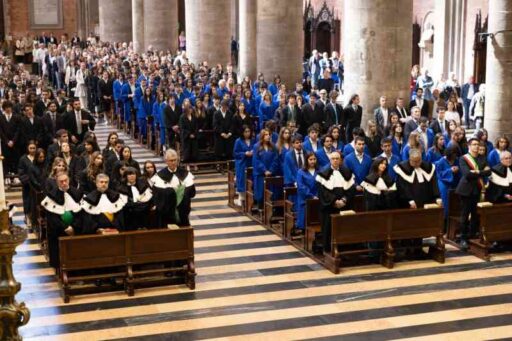 «Questa cerimonia ci ricorda che non siamo mai soli nel nostro cammino. Ci sono i vostri genitori, i parenti, gli amici, le persone a voi più care. E poi ci sono i professori e il personale dell’ateneo. Ci siamo impegnati anche noi, con voi e per voi, per offrirvi un’istruzione valida. Il vero sapere non è solo conoscere o saper fare, ma saper essere, saper costruire insieme una realtà umana più vera e più giusta, all’altezza delle sfide di oggi e di domani».