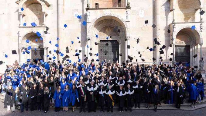 Una grande festa per ricordarci che «non siamo mai soli nel nostro cammino». È la Festa di laurea, «la vostra festa», come ha detto Mons. Gianni Ambrosio, Vescovo Emerito della Diocesi di Piacenza-Bobbio, rivolgendosi direttamente ai 274 studenti che hanno partecipato all’edizione 2024 della tradizionale cerimonia che si è conclusa con il lancio del tocco ai piedi della Cattedrale di Santa Maria Assunta e Santa Giustina. «Con questa festa si conclude il vostro percorso nella sede piacentina dell’Università Cattolica. Siete laureati, bravi!» ha proseguito Mons. Ambrosio.