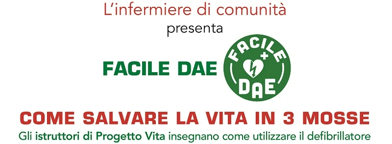 Com’è noto, in caso di arresto cardiaco, ogni minuto è prezioso. Per salvare una persona, occorre iniziare al più presto la defibrillazione. L’infermiere di comunità presenta quindi Facile Dae, appuntamento informativo per la cittadinanza. Gli istruttori di Progetto Vita insegnano come utilizzare il defibrillatore in caso di arresto cardiaco: