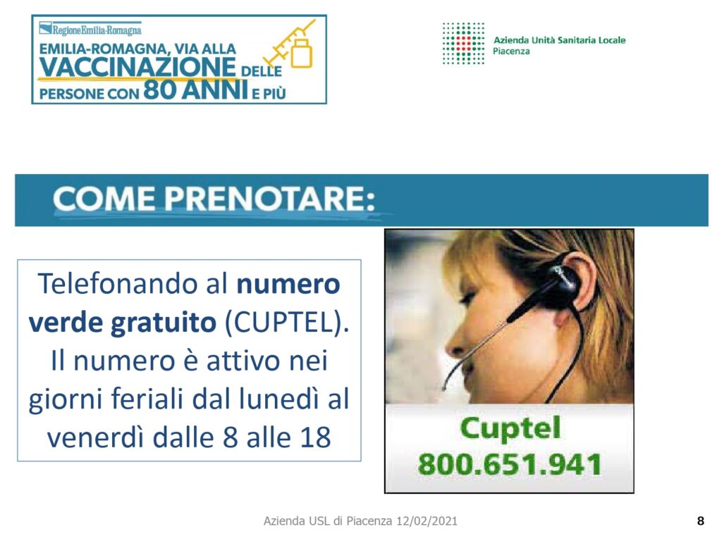 E’ possibile chiamare anche il numero verde del CUPTEL, ovvero 800651941. A tal proposito l’Ausl ha potenziato il servizio CUPTEL proprio per garantire un servizio efficiente dal momento che sono attese migliaia di chiamate.