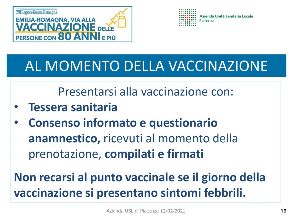 Attenzione particolare alle persone che non possono spostarsi: se un cittadino non è in grado di raggiungere la sede vaccinale lo dovrà specificare e l’Ausl provvederà alla vaccinazione a domicilio. I tempi saranno leggermente più lunghi rispetto alla vaccinazione nelle sedi adibiti.