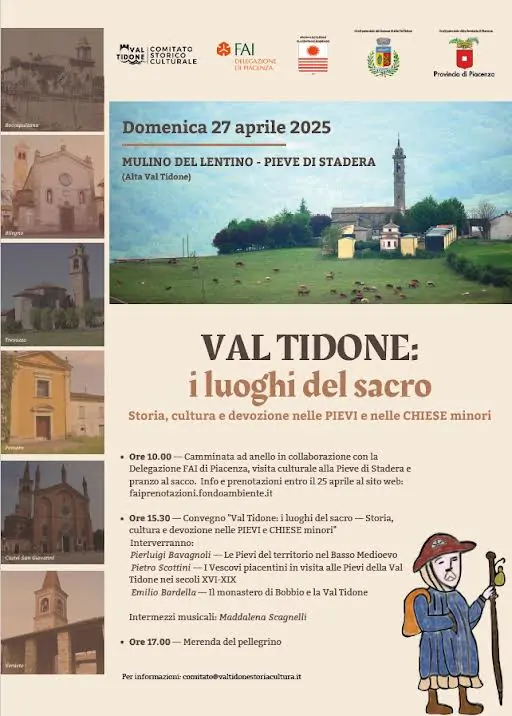 Nel pomeriggio, presso il Borgo Mulino Lentino, si terrà il convegno dal titolo “Val Tidone: i luoghi del sacro – Storia, cultura e devozione nelle pievi e nelle chiese minori”, con interventi di studiosi ed esperti che approfondiranno il ruolo delle pievi e della spiritualità nella storia della vallata: