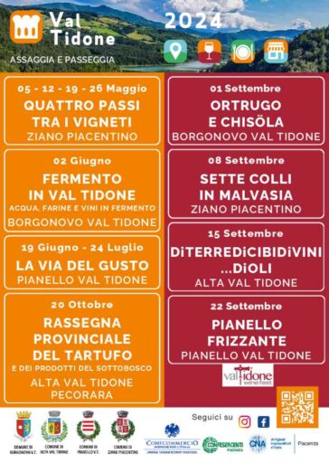 Val Tidone cresce la collaborazione fra i quattro comuni Borgonovo, Pianello, Ziano Piacentino e Alta Val Tidone nelle iniziative di valorizzazione del loro territorio. A ormai 15 anni dall’inizio del partenariato che si è consolidato negli anni attraverso l’iniziativa Valtidone Wine Fest, la più grande rassegna del vino piacentino che si tiene ogni anno nel mese di settembre per valorizzare il territorio e i suoi prodotti tipici, ecco il nuovo progetto “Val Tidone il gusto si fa in quattro”.
