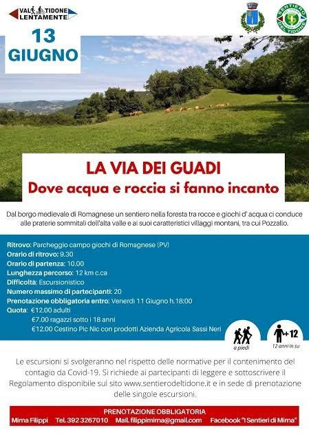 Domenica 13 giugno è in programma “LA VIA DEI GUADI – Dove acqua e roccia si fanno incanto“. Si tratta del titolo della nuova escursione, facente parte del circuito “Val Tidone Lentamente – Ripartiamo dalla Val Tidone”, che partirà dal caratteristico borgo di Romagnese in provincia di Pavia.