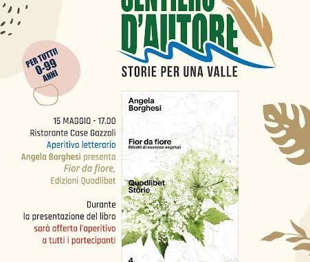 Al termine dell’escursione e aperto a tutti, anche a chi non ha partecipato alla camminata, alle ore 17:00, presso il ristorante Case Gazzoli, nuovo appuntamento con “Sentiero d’Autore: storie per una valle”, progetto culturale\letterario realizzato con il finanziamento del Centro per il libro e la lettura e vincitore del bando “Città che legge 2020” da parte delle amministrazioni comunali e delle biblioteche di Sarmato e di Pianello Val Tidone: verrà presentato il libro “Fior da fiore – Ritratti di essenze vegetali” di Angela Borghesi. Durante la presentazione del libro sarà offerto l’aperitivo a tutti i partecipanti. Per maggiori informazioni biblioteca.sarmato@sintranet.it oppure biblioteca.pianello@libero.it