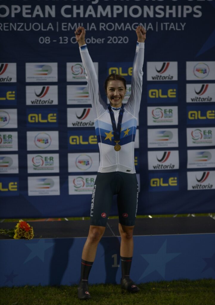 Ancora una medaglia d’oro per l’Italia nel campionato europeo su pista per le categorie Junior e Under 23 che si sta disputando (da ieri fino a martedì 13) al Velodromo Attilio Pavesi di Fiorenzuola d’Arda (Piacenza): è quella conquistata da Martina Fidenza nello scratch Donne Under 23. L’atleta bergamasca, con una grande volata, ha preceduto l’olandese Maike Van Der Duin e la portoghese Maria Martins.