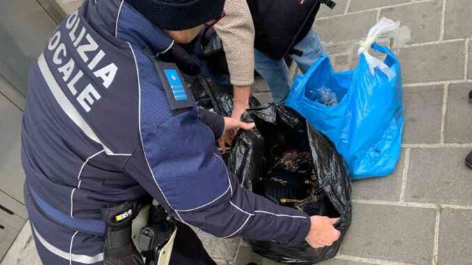 Gucci, Prada, Luis Vuitton. Sono solo alcuni dei marchi contraffatti di cui era in possesso un venditore abusivo. Gli agenti della polizia locale lo hanno sorpreso questa mattina in pieno centro a Piacenza, e per la precisione in via Venti Settembre angolo via San Giuliano. Le pattuglie erano impegnate nel consueto servizio anti-degrado durante il mercato settimanale con controlli mirati in particolare al contrasto dell’abusivismo.