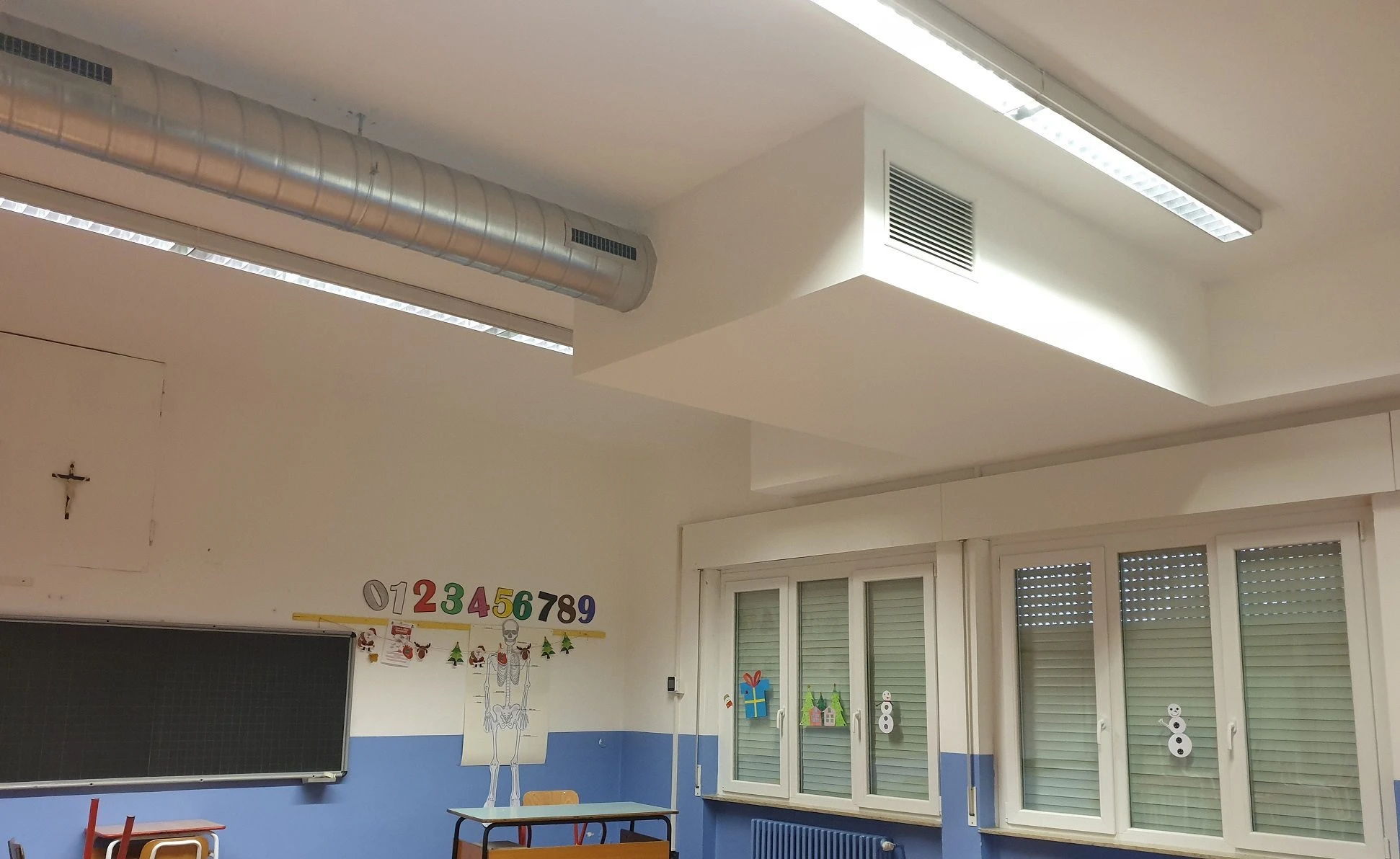 L’Amministrazione Comunale di Gragnano Trebbiense ha realizzato la ventilazione meccanica controllata per tutte le aule scolastiche della scuola primaria e della scuola secondaria di primo grado. Le soluzioni installative e le tipologie di macchine hanno dovuto adeguarsi alle diverse conformazioni degli edifici ed in particolare, nella scuola primaria l’altezza più ridotta degli ambienti ha reso più complesso la realizzazione dell’impianto.