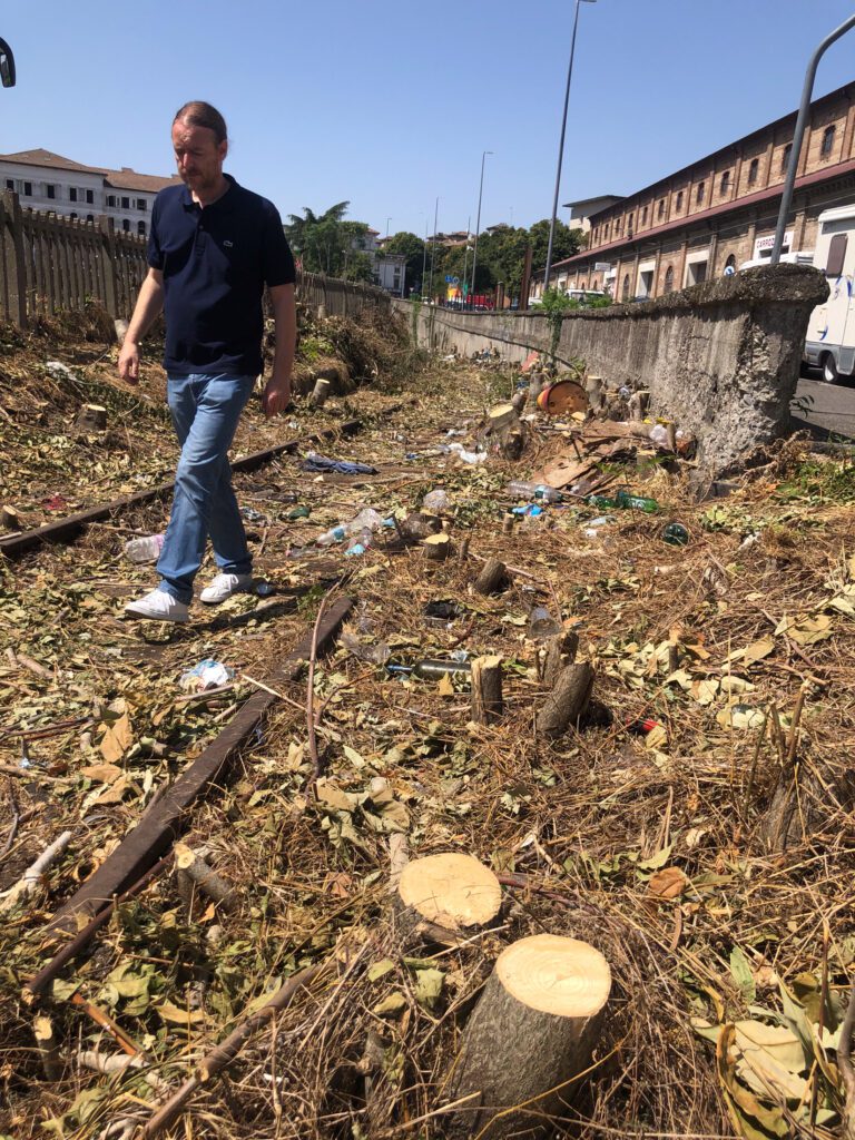 Nella mattinata di oggi, invece, si è proceduto alla pulizia del tracciato dei binari in via dei Pisoni, eliminando da un lato gli ostacoli che impedivano la visuale delle telecamere e, dall’altro, facendo emergere, anche in questo caso, rifiuti di ogni genere che, sempre in queste ore, Iren sta eliminando.