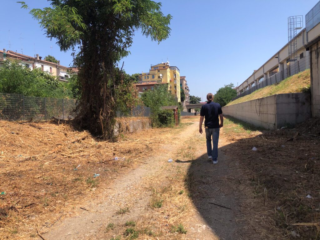 I lavori sono iniziati già da qualche giorno con la pulizia di un lungo tratto parallelo a viale Patrioti tra i binari della vecchia linea ferroviaria militare in disuso e la ciclabile che porta verso la Lupa.