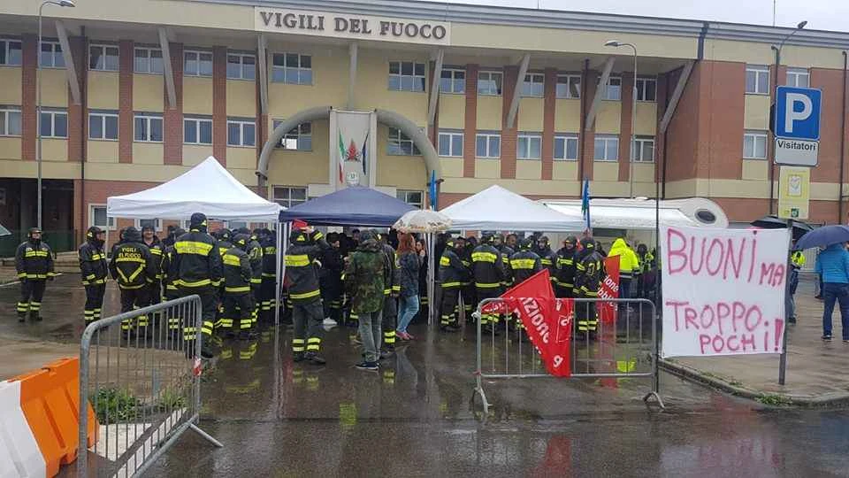 Vigili del fuoco in sciopero. Erano trent’anni che non scioperavano a Piacenza. I pompieri sono stati spinti in strada da condizioni di lavoro che giudicano ormai inaccettabili. E così questa mattina, davanti al comando provinciale di strada Valnure è stato allestito un sit in, mirato a sensibilizzare la politica sulle problematiche più gravi che attanagliano il comparto. Due in particolare.