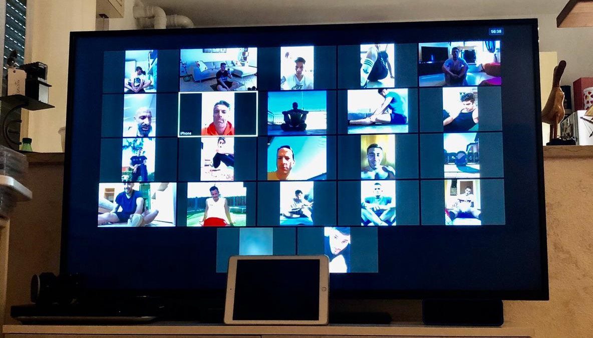 Tre sedute settimanali di lavoro muscolare in videochiamata di gruppo coordinate dal preparatore fisico Pablo Lischetti.