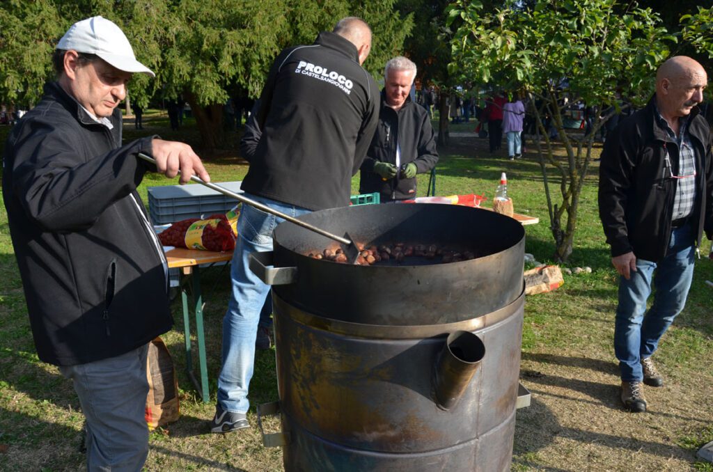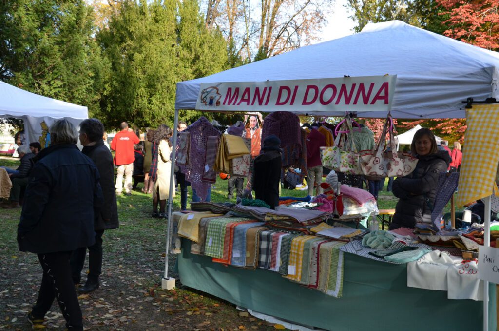 Se i volontari della Pro Loco si sono occupati della preparazione delle castagne, del risotto e di altri piatti, all’interno dei giardini erano presenti anche numerosi stand che esponevano prodotti quali tartufi, miele, riso, funghi, marmellate, salumi, cioccolato, lavorazioni a maglia, lavorazioni in vimini.