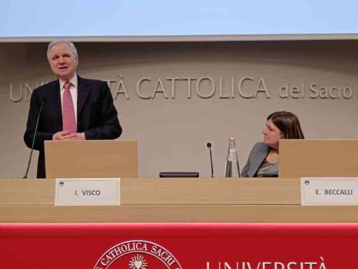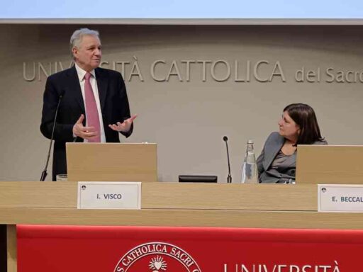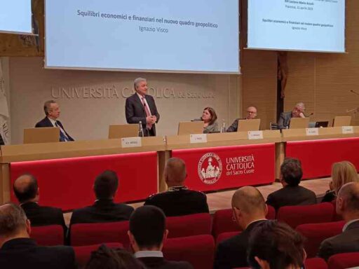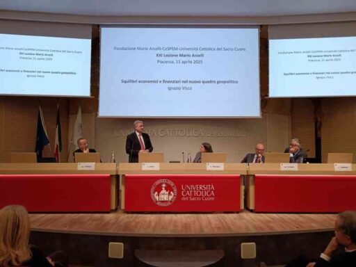 Il Governatore onorario di Banca d’Italia, Ignazio Visco, ospite dell’Università Cattolica. Visco ha tenuto la XXI Lezione Arcelli. E’ stata l’occasione per discutere, alla presenza del Rettore dell’Università Cattolica, Elena Beccalli, degli squilibri finanziari ed economici nei nuovi scenari geopolitici che si stanno determinando in queste settimane. La guerra dei dazi su larga scala avviata dall’Amministrazione Trump, l’atteggiamento della Cina di reazione immediata e le prospettive delle proposte europee che sono in via di definizione, sono i tre grandi temi dell’economia e della politica di queste settimane.