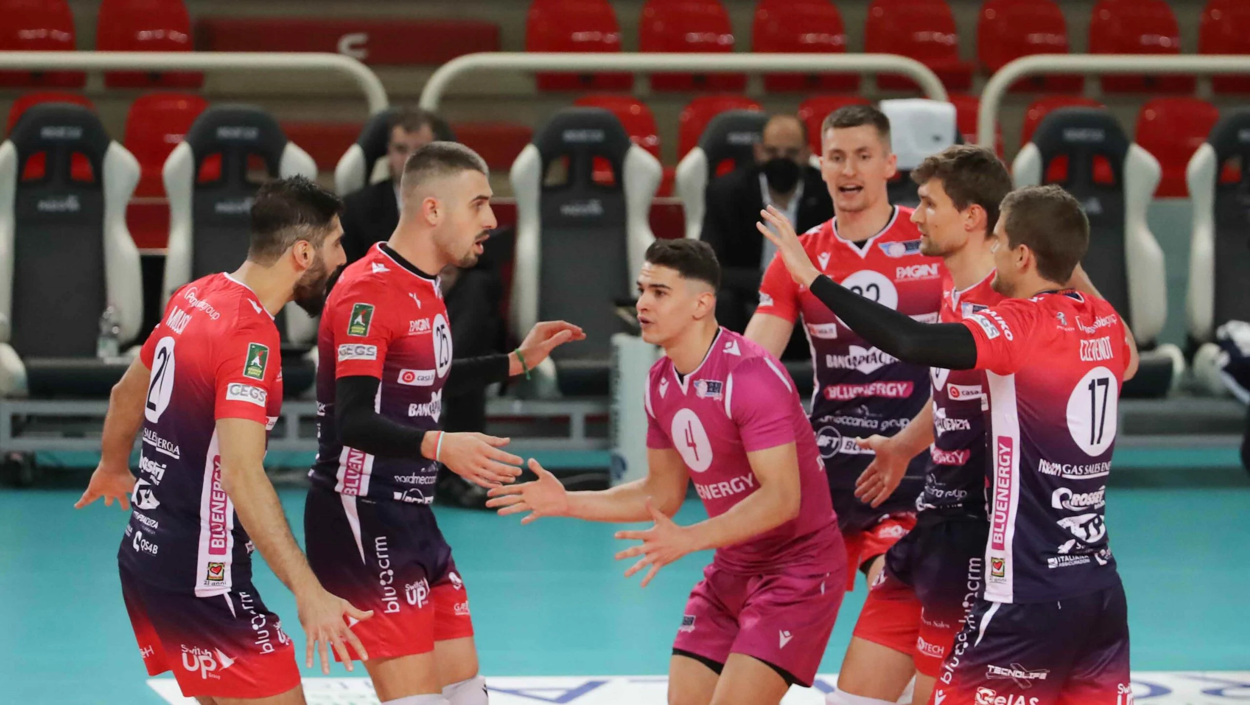 Una serata non partita nei migliori dei modi per Clevenot e compagni che dopo un primo set quasi dominato subiscono il ritorno dei padroni di casa che nel finale superano in maniera decisiva i piacentini. Gas Sales Bluenergy Volley Piacenza, però, è brava a reagire fin da subito e a girare a proprio favore il match, conquistano il pass per la semifinale. Mvp di serata è Michal Finger con i suoi 17 punti, seguito a ruota dal solito capitan Clevenot (per lui 16 punti di cui 3 muri). Piacenza fa la voce grossa anche con i suoi centrali, ben diretti da un ispirtato Baranowicz: Tondo e Mousavi chiudono con 7 e 13 punti e alte percentuali in attacco (70% e 69%). Bella prova anche per Scanferla, autore di pregevoli difese e salvataggi da applausi.