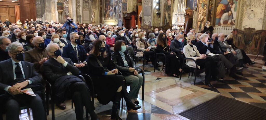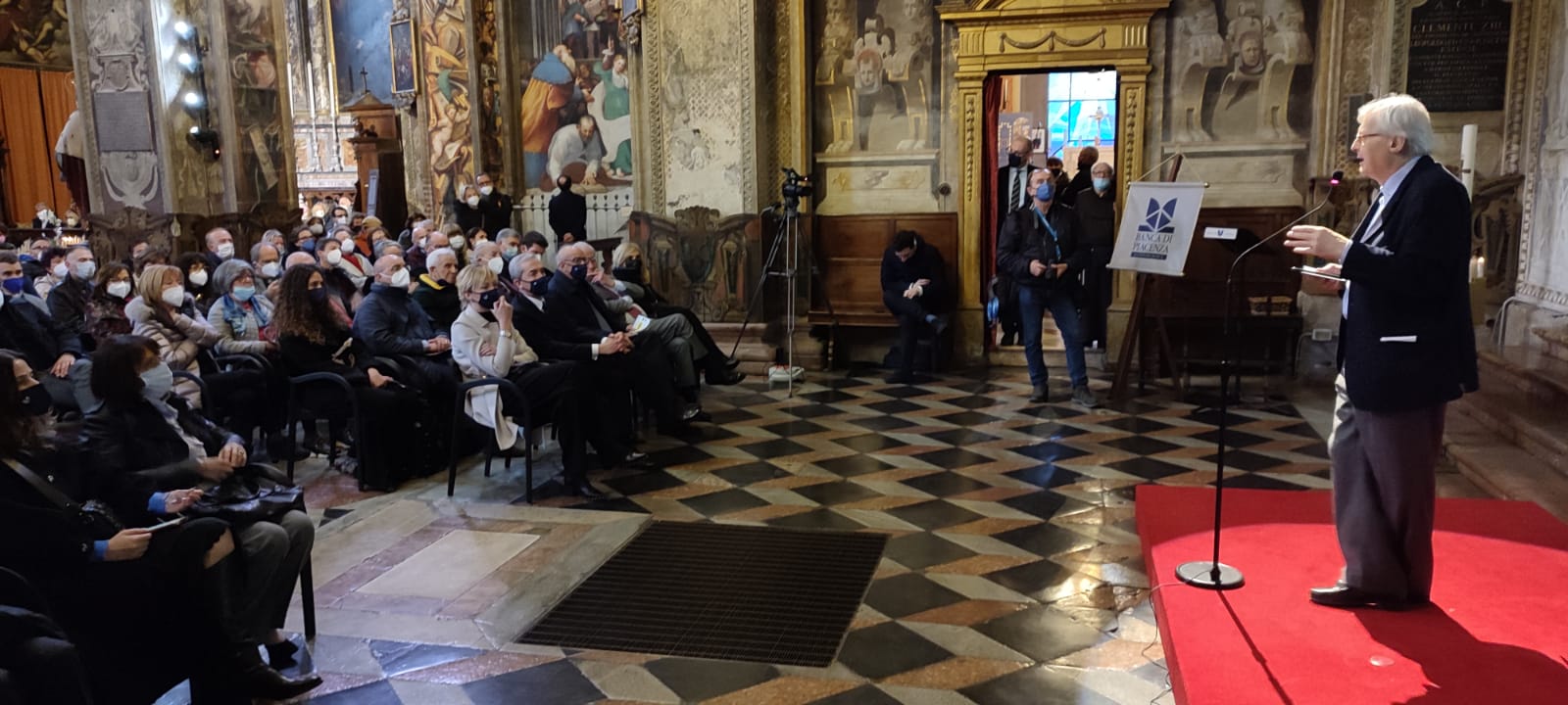 Sono stati centinaia i piacentini che oggi pomeriggio, sabato 2 aprile, hanno affollato Santa Maria di Campagna per ascoltare la lectio magistralis di Vittorio Sgarbi sul Guercino che adorna la Basilica, anteprima delle Celebrazioni per i 500 anni dalla posa della prima pietra del santuario mariano che avranno inizio domani, 3 aprile. «Sono lusingato della vostra presenza e del vostro entusiasmo – ha affermato il critico d’arte, presentato dal condirettore generale della Banca di Piacenza Pietro Coppelli – una presenza così numerosa chi mi commuove: segnerò questo giorno nell’agenda della mia anima come momento alto e spirituale. Essere così tanti in questa chiesa è un segnale importante, un indice di ripresa dopo i momenti bui della pandemia».