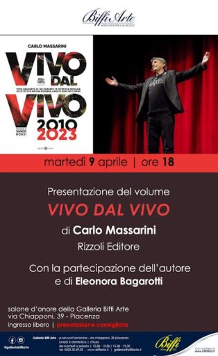 Martedì 9 Aprile alle ore 18 alla Galleria Biffi Arte è in programma la presentazione del volume “VIVO DAL VIVO” di Carlo Massarini. L’appuntamento prevede la partecipazione dell’autore e di Eleonora Bagarotti.