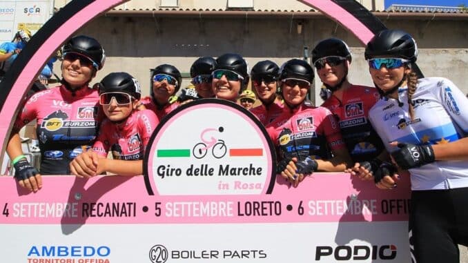 Nuovo doppio piazzamento e anche tanta sfortuna per il VO2 Team Pink nella seconda giornata del Giro delle Marche in Rosa, manifestazione a tappe Open dove il sodalizio piacentino partecipa con nove atlete Juniores. Nella corsa in linea con partenza e arrivo a Villa Musone di Loreto, le ragazze del ds Stefano Peiretti hanno centrato due top ten di categoria, proprio come venerdì sera nella cronometro di Recanati. L’ossolana Francesca Barale è risultata la quarta Junior al traguardo, mentre la brianzola Cristina Tonetti ha occupato la casella numero sei tra le atlete della categoria, dove la migliore è risultata Alice Palazzi dell’Awc Re Artù General System.