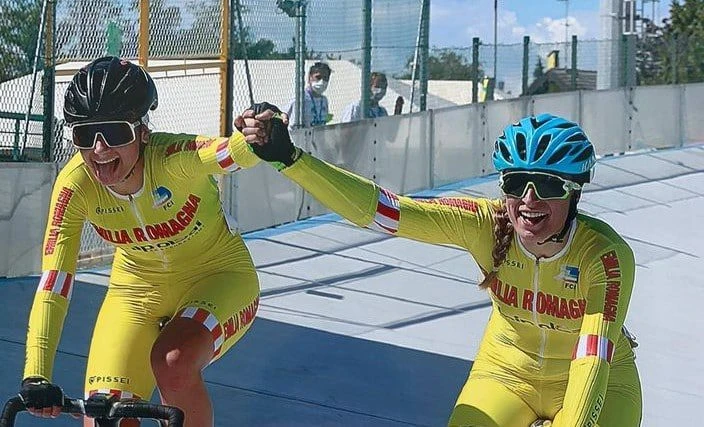 Ai campionati giovanili su pista di San Giovanni al Natisone la “panterina” Martina Sanfilippo del VO2 Team Pink – in coppia con la romagnola Gaia Bolognesi – vince la Madison Allieve. Nella stessa gara, medaglia di bronzo per Elisa Incerti con l’altra romagnola Valentina Zanzi. Quarta Vittoria Grassi nella Velocità a squadre Allieve