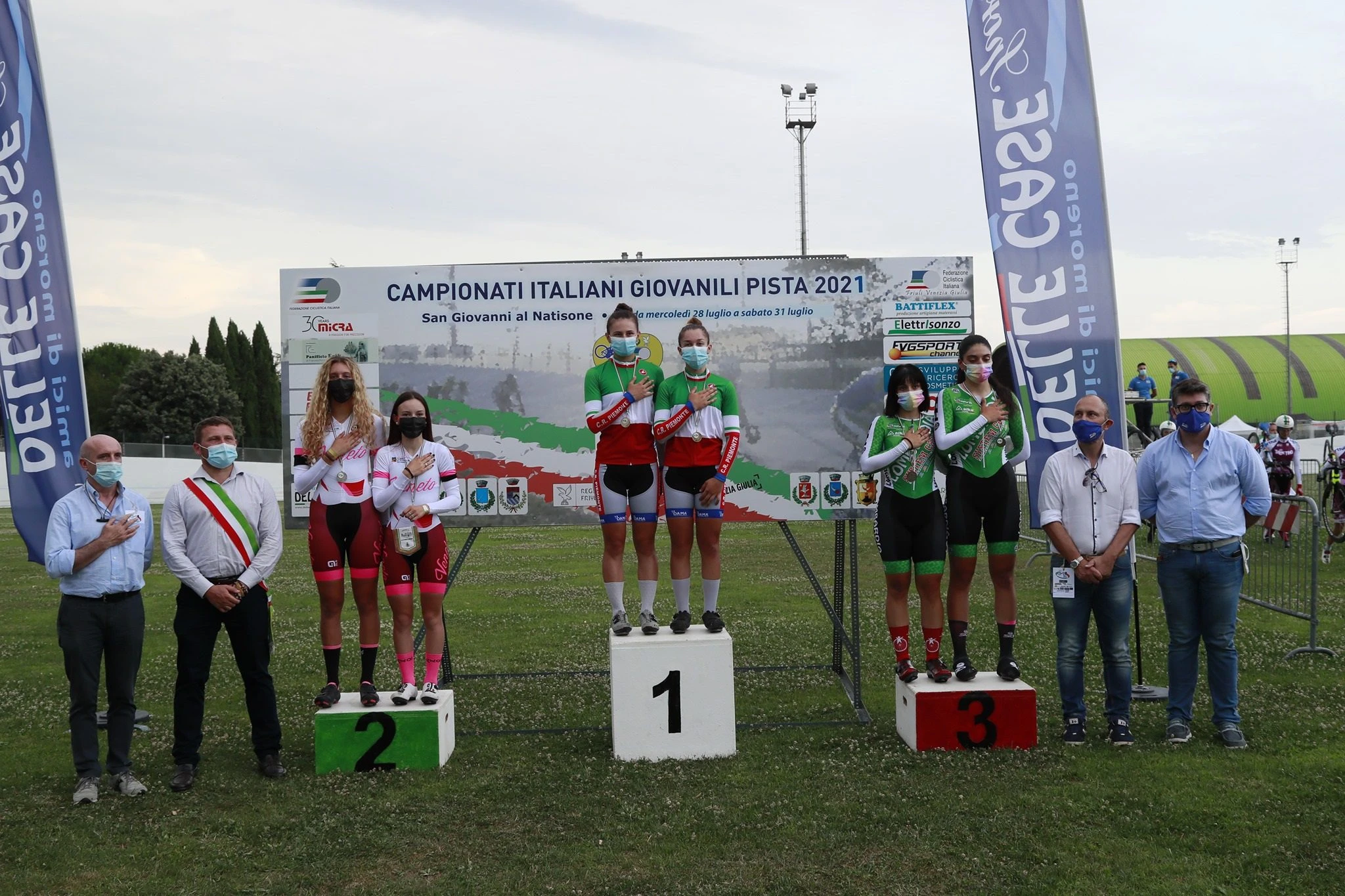 Il sodalizio piacentino del presidente Massimo Arnesano applaude l’impresa dell’Allieva torinese Vittoria Grassi, oro nella Velocità a squadre corsa con la maglia del Piemonte in coppia con Anita Baima (Cicli Fiorin). Per loro, il miglior tempo nella finale fermando il cronometro sul tempo di 30 secondi 842, mentre l’argento è andato al Veneto (Sara Faustini ed Elisa Tottolo), 31” 467. Bronzo, infine, per la Lombardia (Rebecca Vezzosi e Beatrice Bertolini) con il tempo di 32” 008.