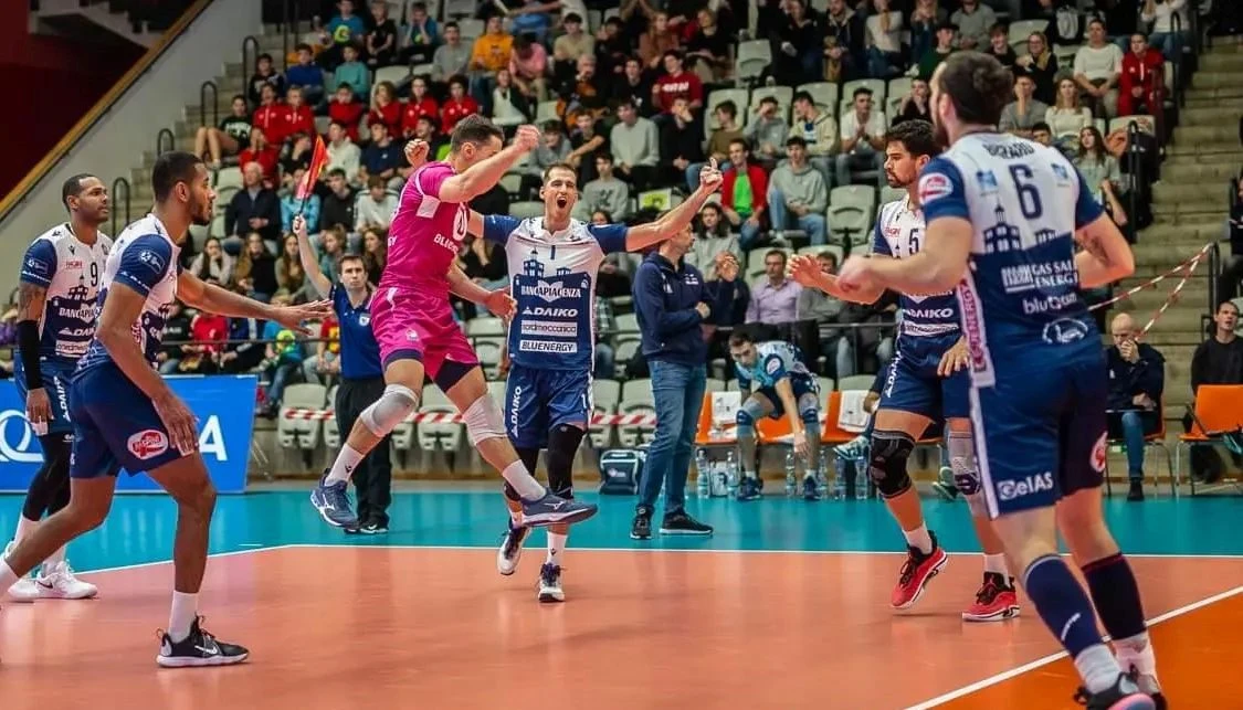 Basta poco meno di un’ora di gioco a Bluenergy Daiko Piacenza per assicurarsi il passaggio agli ottavi di finale di Cev Volleyball Cup. Bastano i primi due set, il primo vinto con autorità, il secondo combattuto fino all’ultimo punto e vinto dopo aver sprecato tre set point ma anche dovuto annullare un set point dei padroni di casa. Un grande Lucarelli, autore degli ultimi tre punti nel parziale, ha rimesso in linea di galleggiamento la barca. Missione compiuta, ora Bluenergy Daiko Volley Piacenza attende l’avversaria degli ottavi di finale che sarà una tra Craiova e Fenerbahce in programma domani in Turchia con i romeni che hanno vinto l’andata per 3-1. A giochi fatti nel terzo set spazio per tutti i biancorossi, set che sembrava già in tasca (16-20) ma alla fine vinto dai padroni di casa. Braccio di ferro nel quarto parziale ma sul 21 pari allungo deciso di Piacenza.