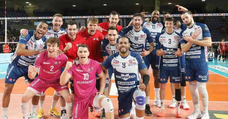 Piacenza subito avanti anche nel terzo parziale: 5-4. Gas Sales Piacenza senza freni: 10-7 con la parallela di Leal. Capitan Brizard con l’attacco “di seconda”: 12-8 per i ragazzi di Anastasi. Romanò e Simon alzano la voce: 15-11. Nikolov non molla, ma Piacenza è in controllo totale: 17-13. Simon blocca Chinenyeze: 19-13. Diagonale strettissima di Romanò: 21-15 Gas Sales. Errore gratuito di Yant, 24-20 per Piacenza. Attacco vincente di Romanò, Piacenza chiude il set 25-22 e vince la partita.