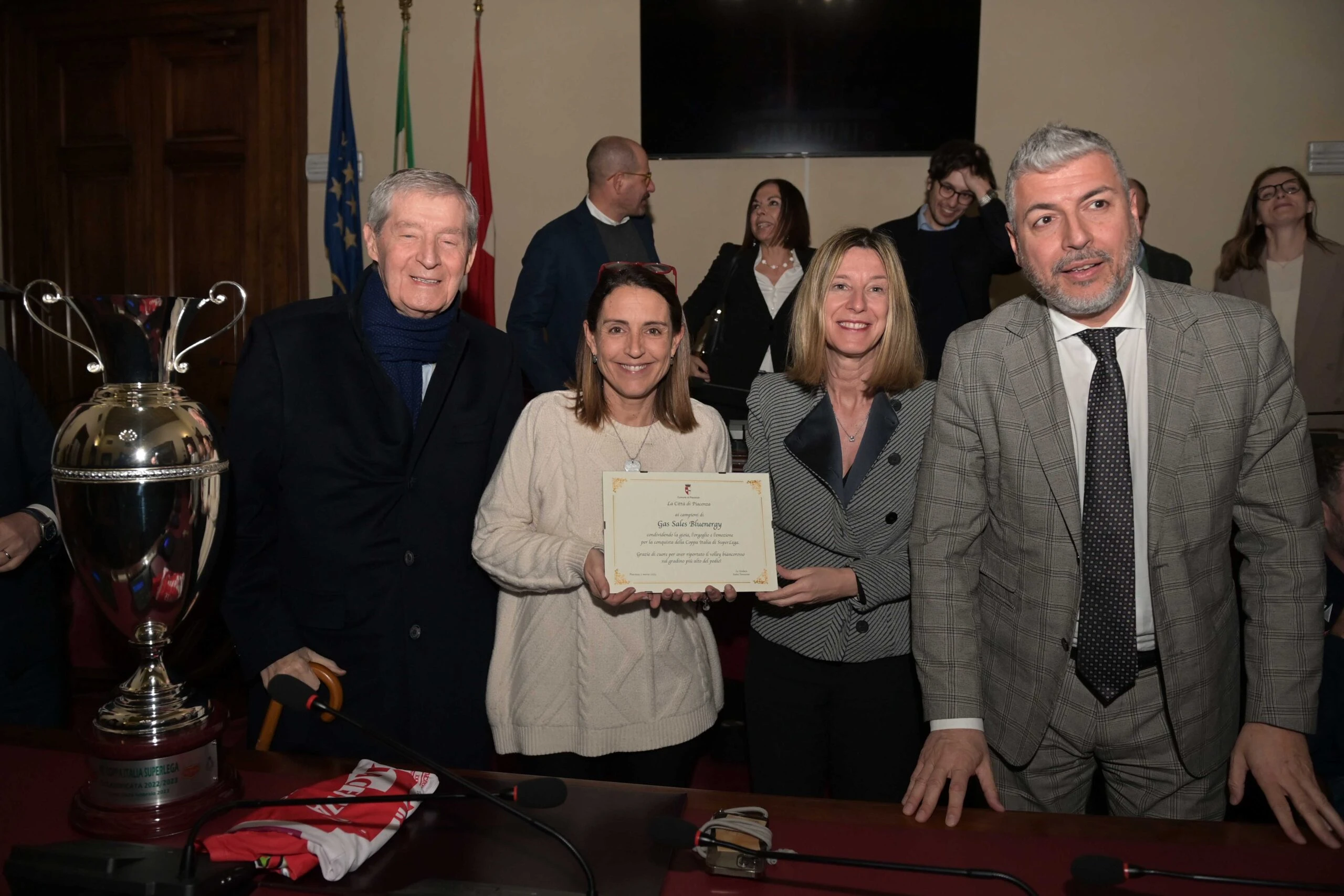 “E’ una bellissima serata, noi piacentini con le coppe ci sappiamo fare e questa Coppa è particolarmente gustosa, l’abbiamo sognata, sperata ed è bello adesso averla qui. È bello condividere queste gioie con le persone che ci vogliono bene, questa serata è anche fatta per dire grazie a tutti voi”.