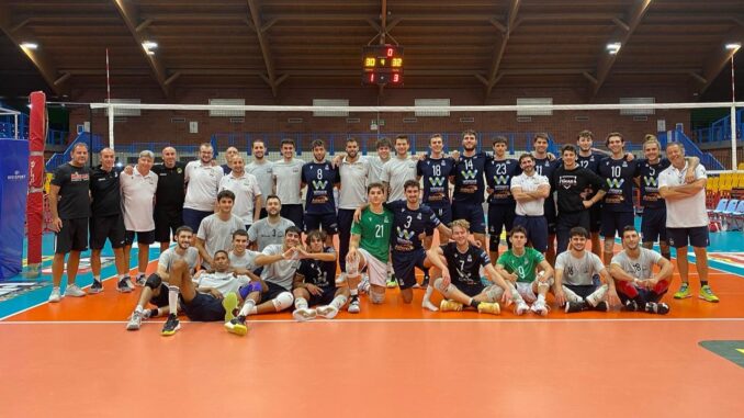 Terzo test stagionale per la Canottieri Ongina, formazione piacentina di serie B maschile che mercoledì sera ha sostenuto un allenamento congiunto a Salsomaggiore contro la Wimore che milita in A3. In una partita informale combattuta a parte il primo set, la squadra di Gabriele Bruni (incompleta nell’occasione per cause di forza maggiore) ha tenuto testa ai padroni di casa nonostante la categoria di differenza (3-1).