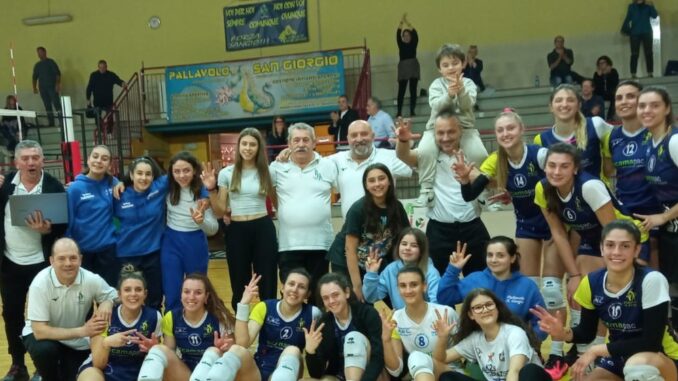 Quattro anni, due mesi e sei giorni dopo la Pallavolo San Giorgio supera la nemesi di Mirandola e riapre i giochi per i playoff promozione. Infatti il team piacentino che mantiene l’imbattibilità casalinga, si porta ad una sola lunghezza dalla Cai Stadium e continua a sognare la storica qualificazione alla seconda fase della stagione.
