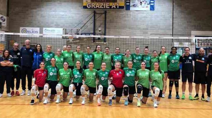 Positiva anche la terza uscita pre-stagionale della Rossetti Market Conad, formazione piacentina che si sta preparando all’esordio annuale nel campionato di B2 femminile. Ieri (martedì) sera le gialloblù allenate da coach Paolo Bergamaschi hanno sostenuto un allenamento congiunto a Rivergaro contro le pari categoria del River Volley, “matricola” della quarta serie italiana. Quattro a zero il risultato informale a favore di Malvicini e compagne, in particolare evidenza in battuta con 14 ace ben distribuiti tra le varie giocatrici. Top scorer, la centrale Mari Konate, autrice di 13 punti, in doppia cifra insieme alla schiacciatrice Claudia Palumbo (10).