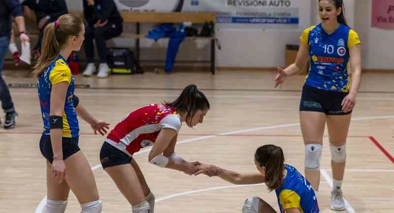 Una spettacolare rimonta non basta alla Rossetti Market Conad per mettere il punto esclamativo nell’ultimo impegno stagionale casalingo in B2 femminile contro la Zerosystem. Contro un avversario già certo dei play off ma ancora in corsa per il primo posto, la squadra di Paolo Bergamaschi (terza alla vigilia e matematicamente fuori dai giochi promozione) ha ceduto al tie break. Sotto 2-0 e 22-19, Alseno ha trovato le forze per reagire, rimontando fino al 2-2, ma nel quinto set ha ceduto al ritorno di fiamma delle modenesi. Il rammarico gialloblù risiede soprattutto nel primo set, dove Falotico e compagne erano avanti 13-4 cedendo poi 22-25.