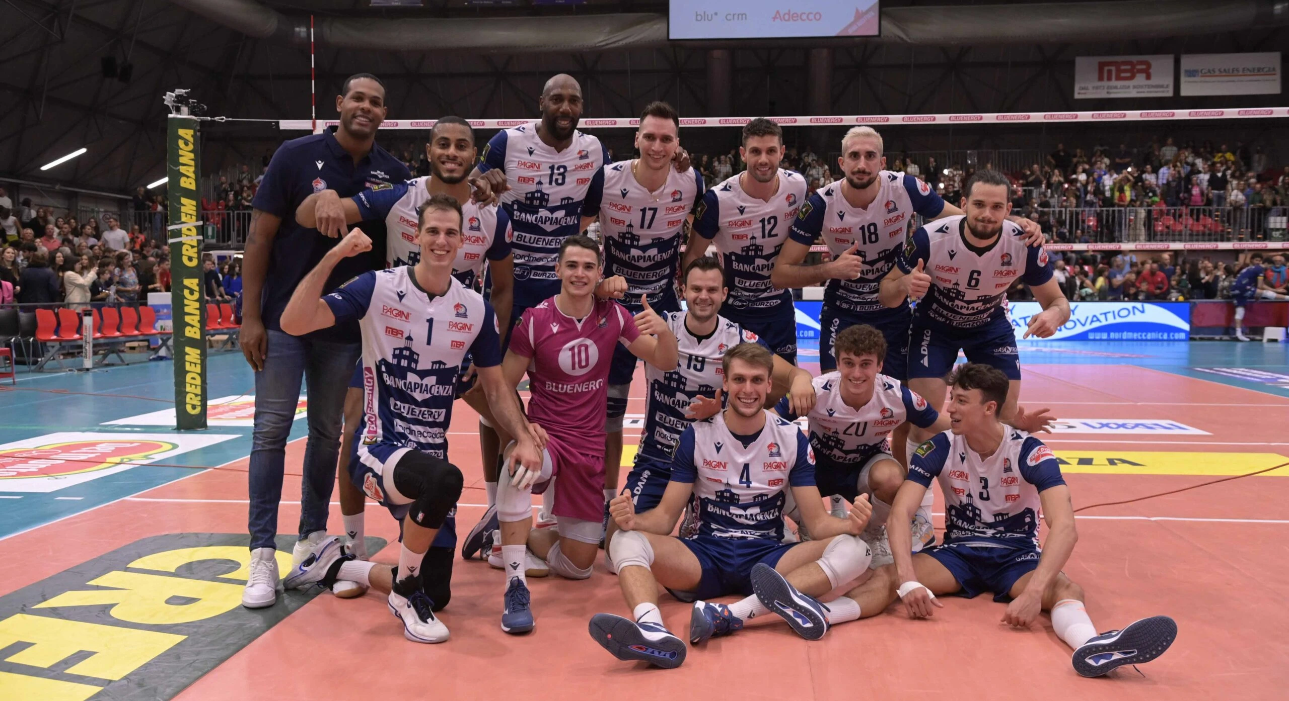 Prima vittoria per Gas Sales Piacenza. L’Itas Trentino lotta fino all’ultimo pallone ma alla fine ha dovuto alzare bandiera bianca. Una vittoria che arriva in un PalabancaSport gremito in ogni ordine di posto e che per tutta la partita ha spinto la formazione biancorossa. Assenze importanti da entrambe le parti, in casa Gas Sales Bluenergy Volley Piacenza mancavano Leal e Alonso, in casa Trento Sbertoli. Debutto stagionale in biancorosso per Ricardo Lucarelli che ha ritrovato il campo dopo oltre un mese di assenza causa l’infortunio patito con il Brasile ai Mondiali.