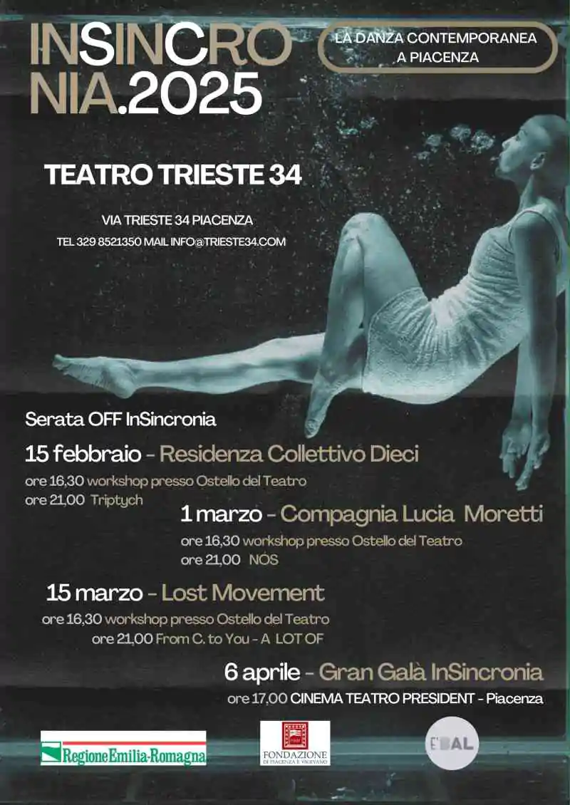 Sabato 15 marzo alle 21 al Teatro Trieste 34 di Piacenza, all’interno del festival Insincronia, la compagnia milanese Lost movement dà il via al proprio tour 2025, che toccherà sino a dicembre Emilia Romagna, Campania, Puglia, Lombardia, Piemonte, Abruzzo, Veneto, Sardegna e Lazio, proponendo un doppio spettacolo. Si parte con From C to You di Giovanni Careccia dà corpo e voce a pensieri inconfessabili di un uomo qualsiasi, un flusso di coscienza in movimento che sfida il voyeurismo del pubblico; a seguire A LOT OF, produzione liberamente ispirata alla figura del coreografo e danzatore Vaslav Nijinsky e alla sua relazione tormentata con la moglie Romola de Pulszky e con l’amante-impresario Sergej Pavlovič Djagilev, sulle note de L’Après-midi d’un Faune di Debussy e Le Sacre du printemps di Stravinskij rielaborati e decostruiti in chiave elettro acustica da Filippo Ripamonti.