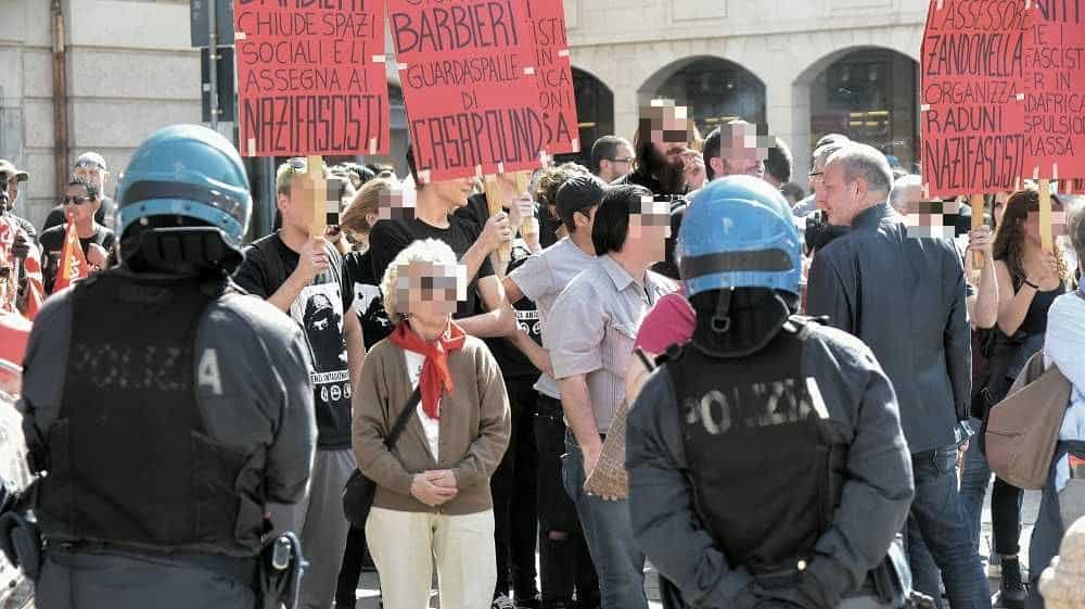 “L’assessore Zandonella organizza raduni nazifascisti”, “La giunta Barbieri chiude spazi sociali e li assegna ai nazifascisti”. Erano alcuni dei cartelli esposti dagli antagonisti il 25 aprile 2018, durante la cerimonia della Festa della Liberazione.